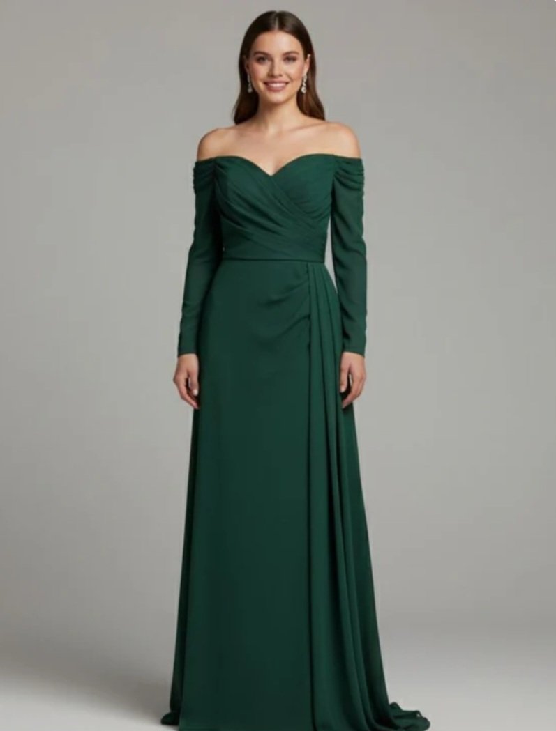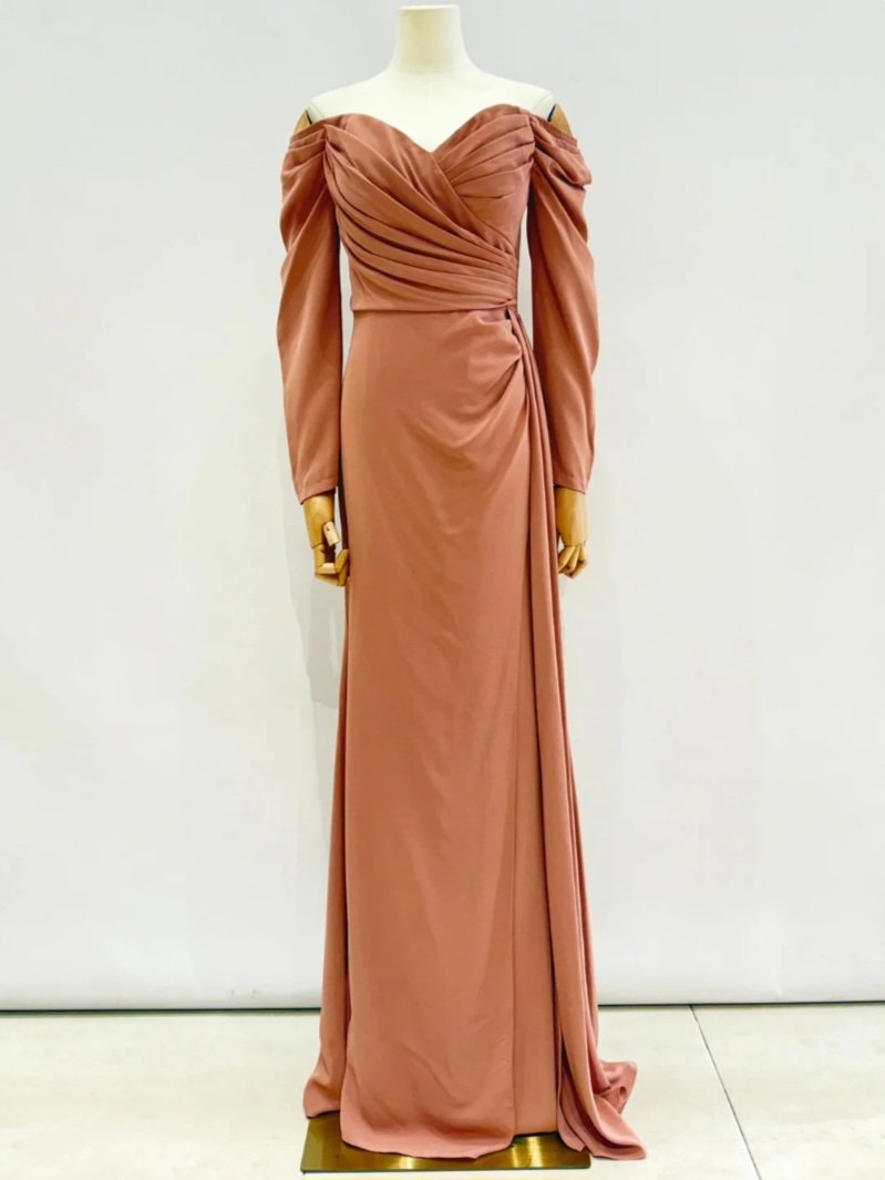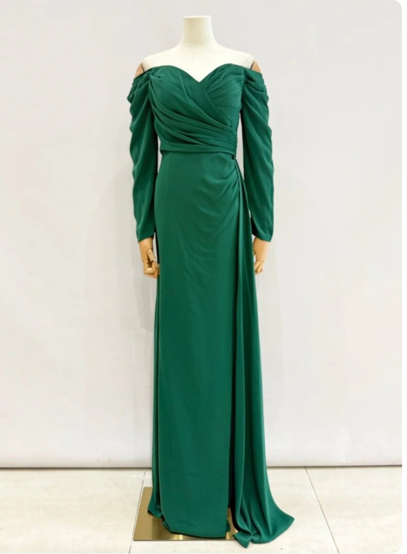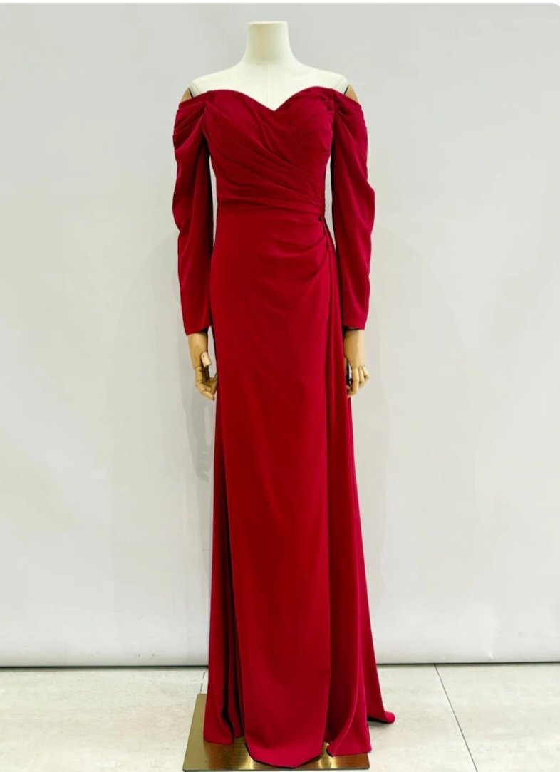 Vestido largo en tono azul royal con escote bardot y mangas larga. Su diseño drapeado estiliza la figura, mientras que la abertura frontal y el panel lateral fluido añaden movimiento y sofisticación. Ideal para eventos formales y noches especiales.