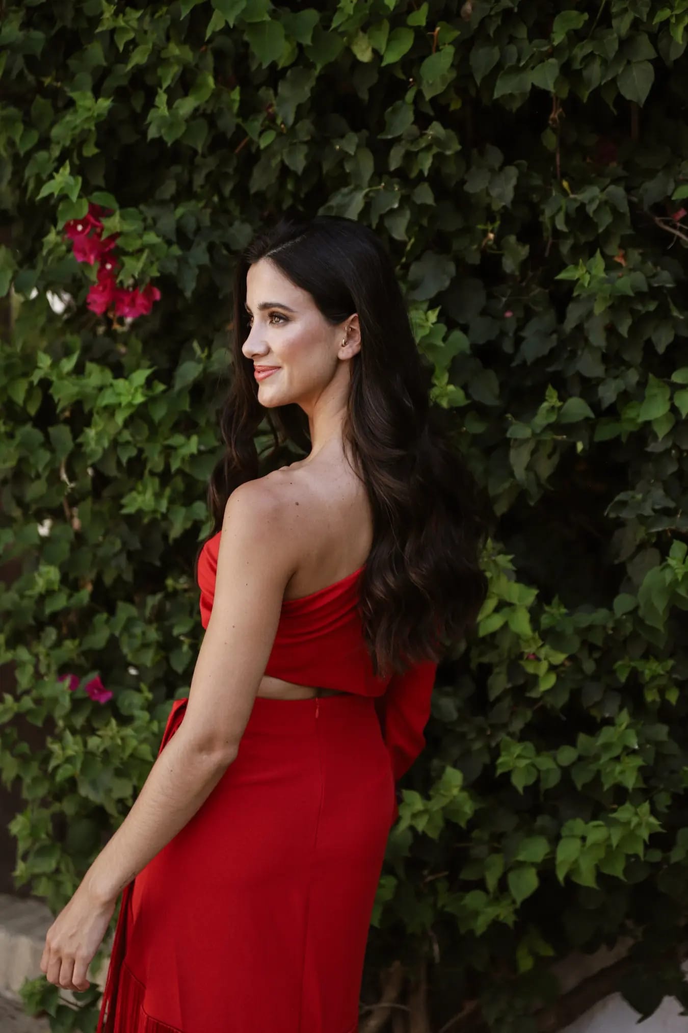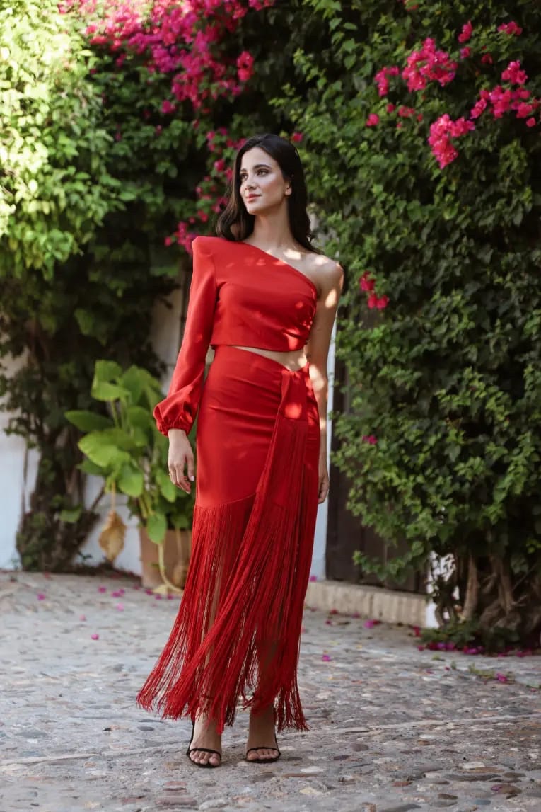 Lady in Red. 🌹 Si buscas el balance perfecto entre sofisticación y tendencia, este total look lo tiene todo: asimetría, movimiento y el color de la temporada. ¡Lista para brillar!